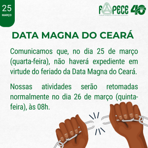 COMUNICADO – FERIADO DATA MAGNA DO CEARÁ